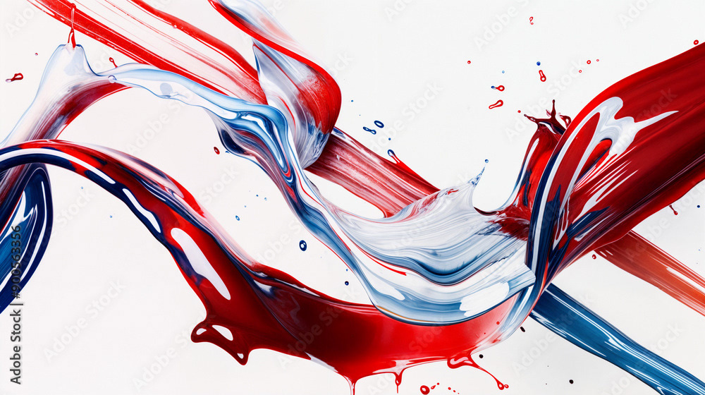 Color brush paint ribbon stroke swirl abstract splash background wave. Brush brushstroke color ribbon paint stroke flow shape wavy design paintbrush pen fluid red, white, and blue element texture acrylic