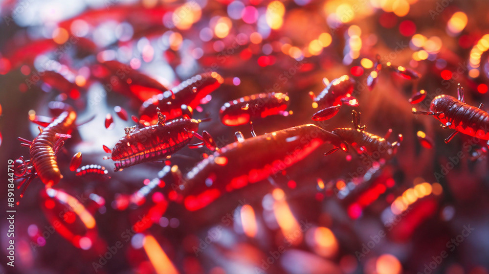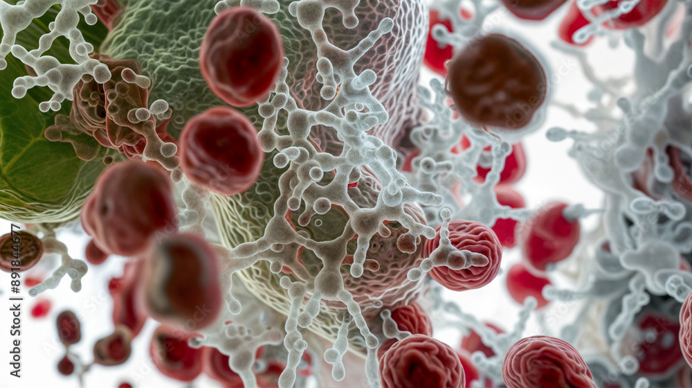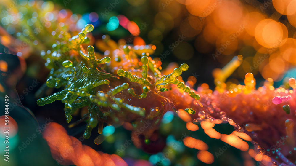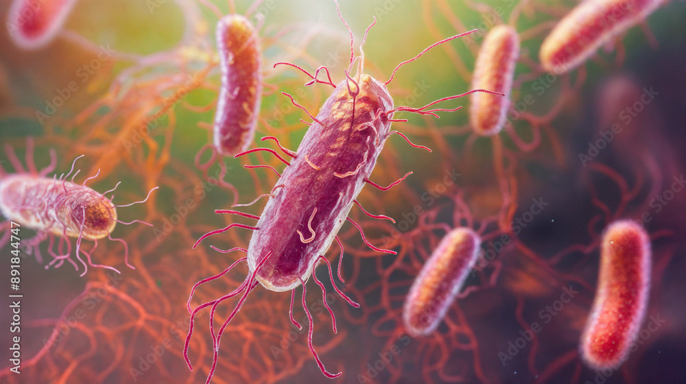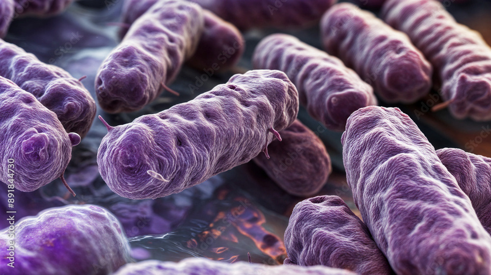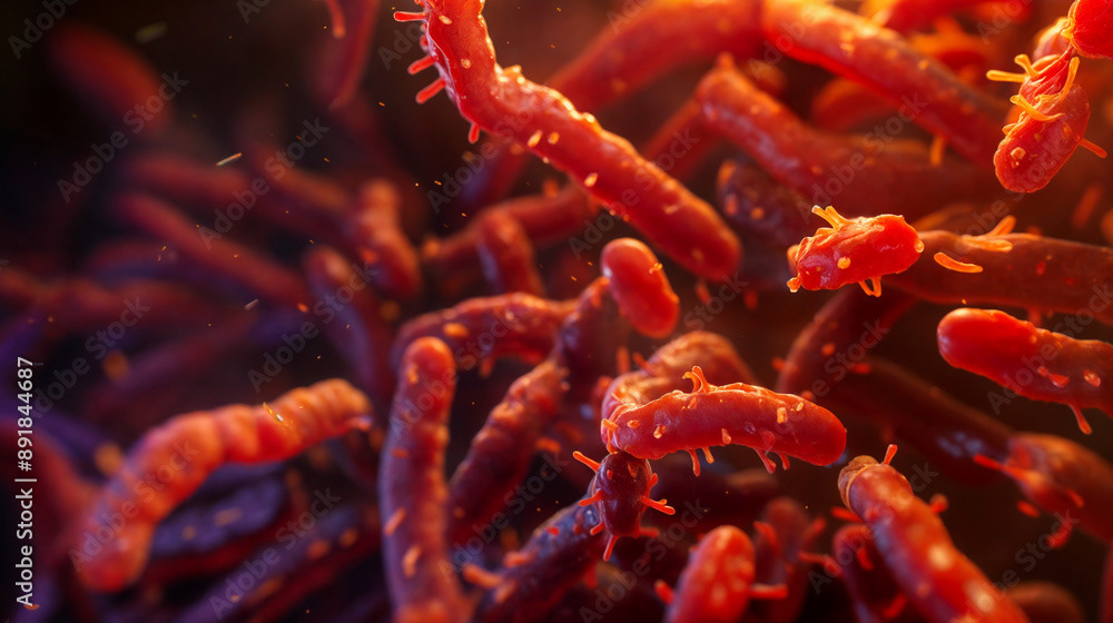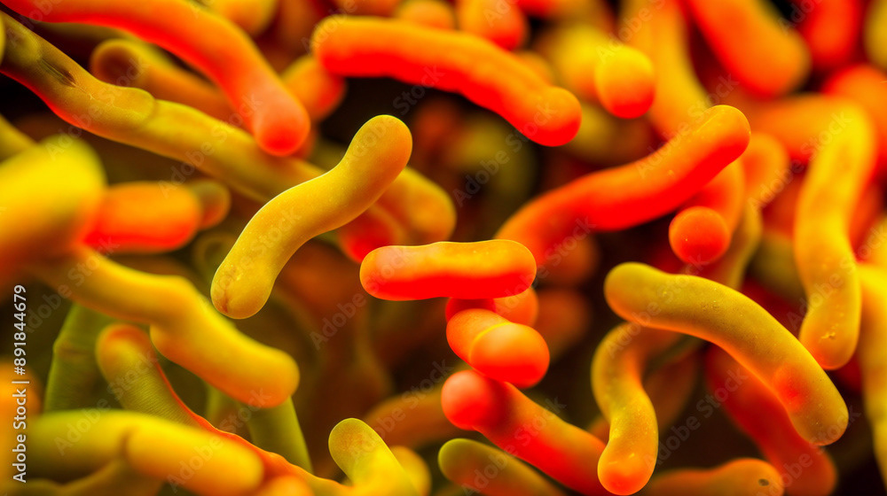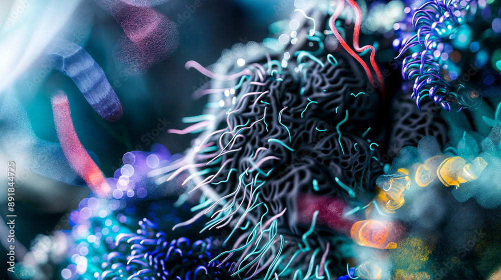 This striking macro photograph offers an ultra-realistic view of bacteria, showcasing the vibrant and intricate world of microorganisms.