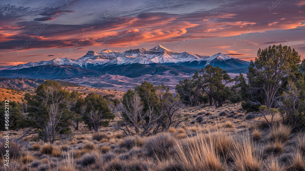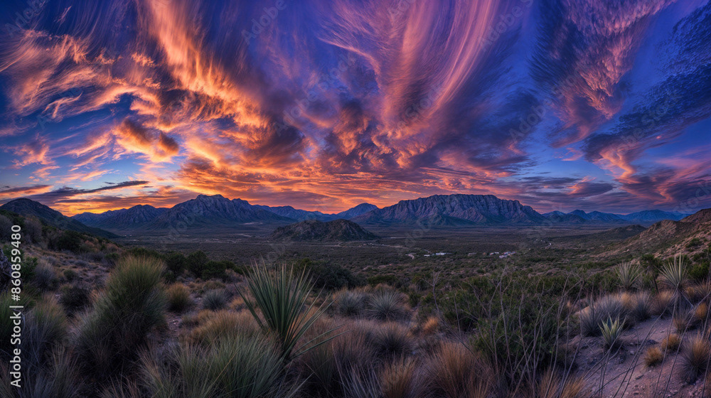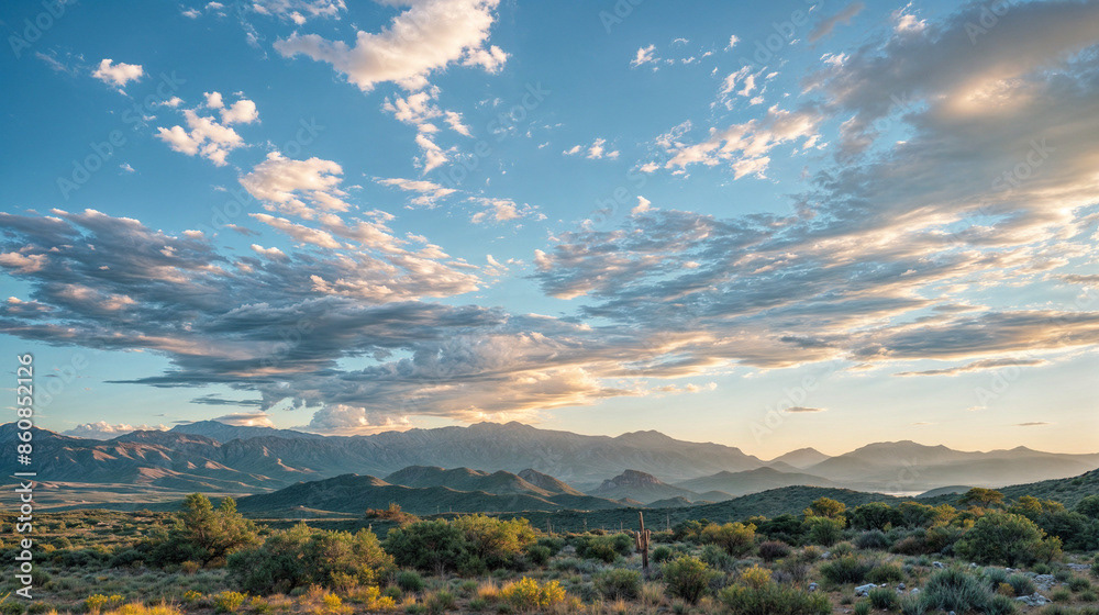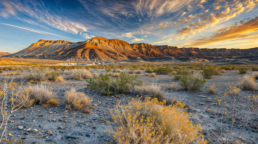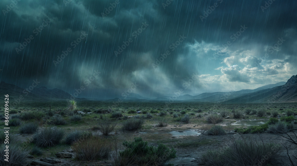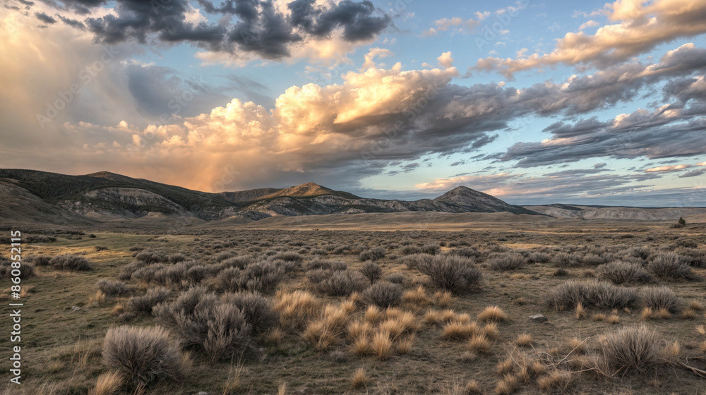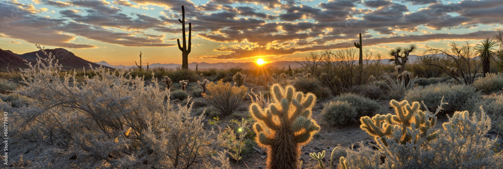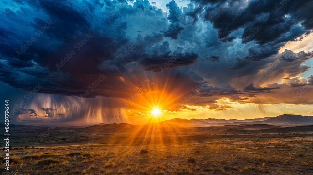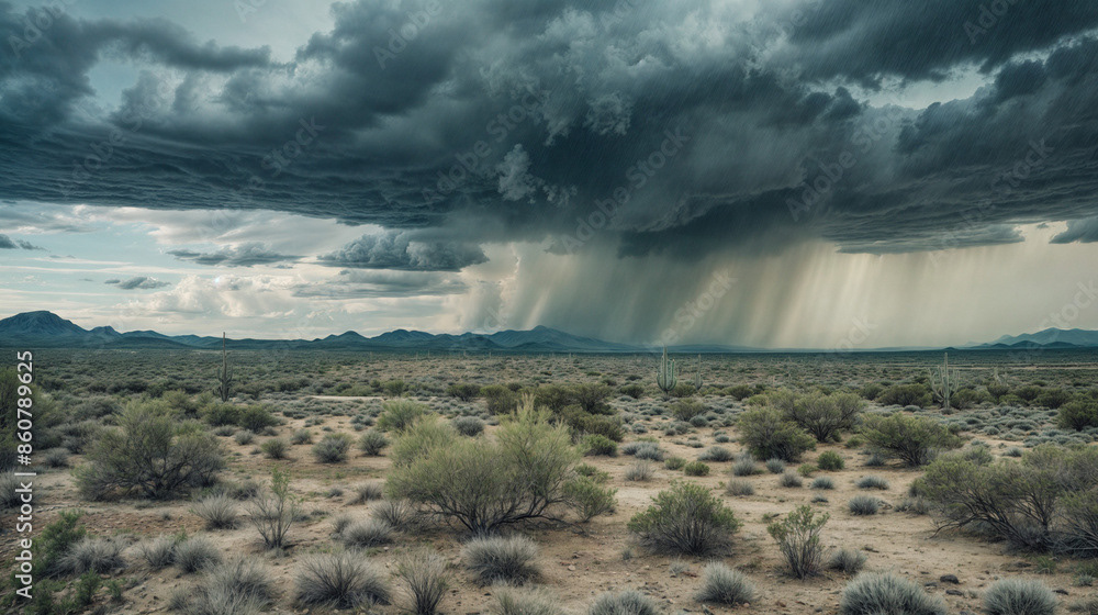 This breathtaking image captures the raw beauty of a desert landscape at sunset, as a dramatic storm rolls in.