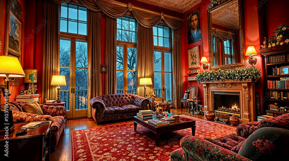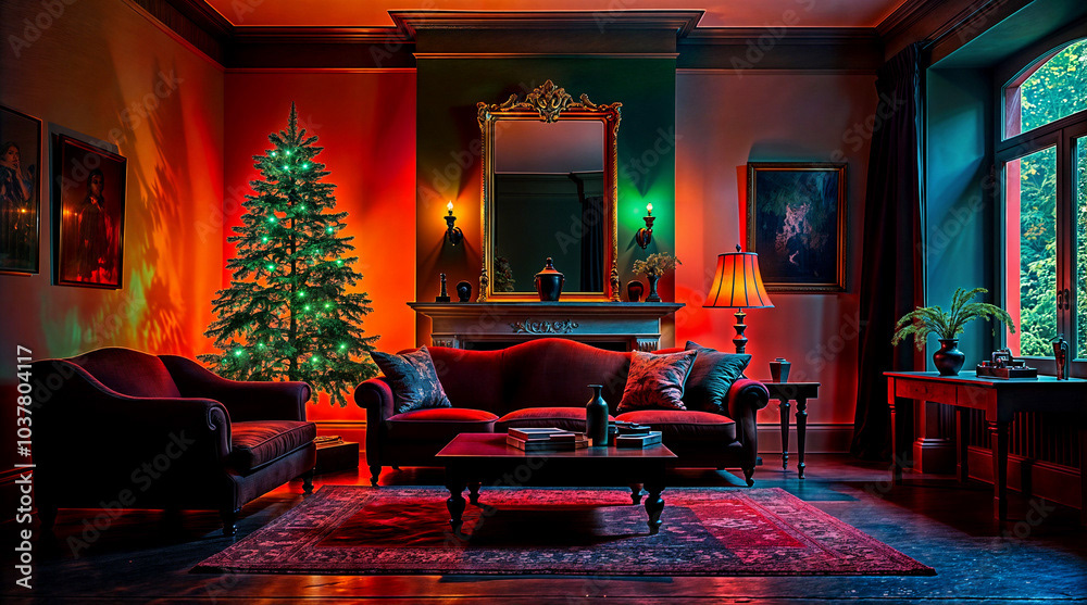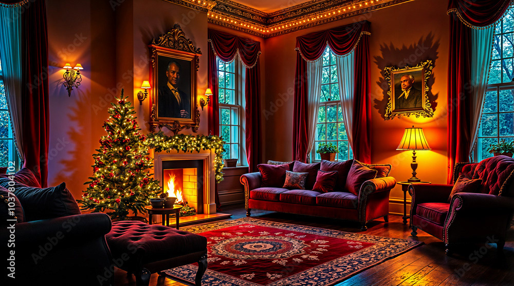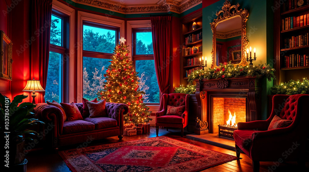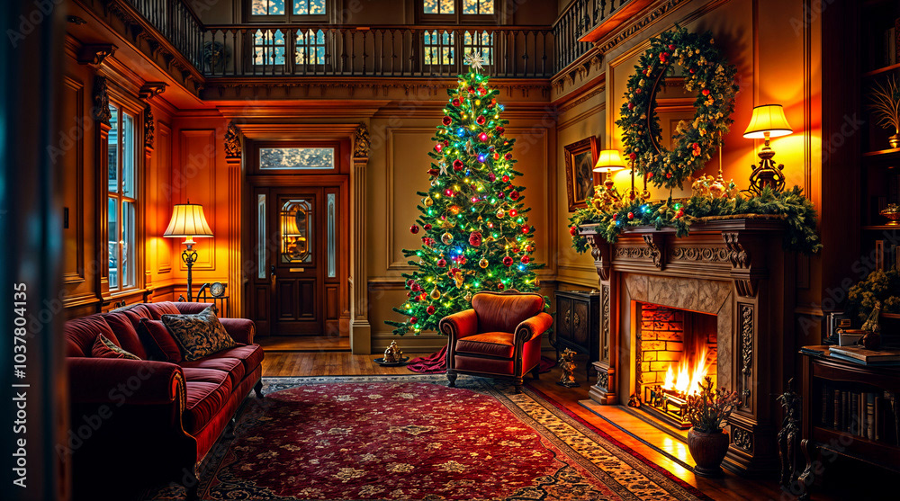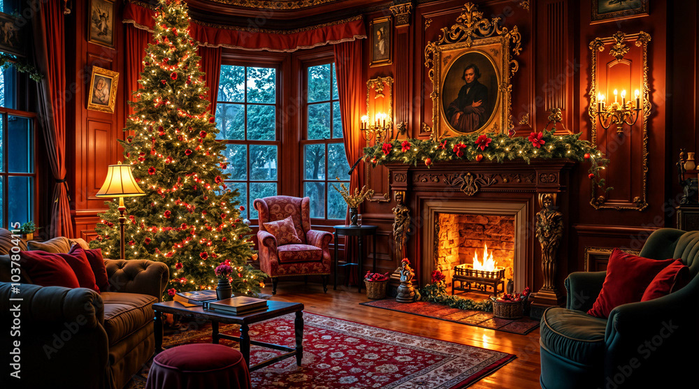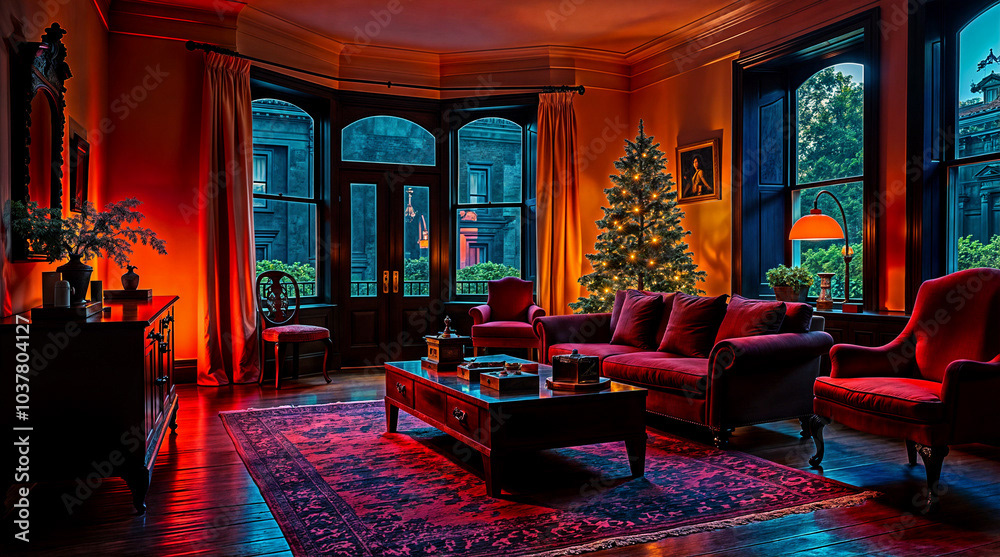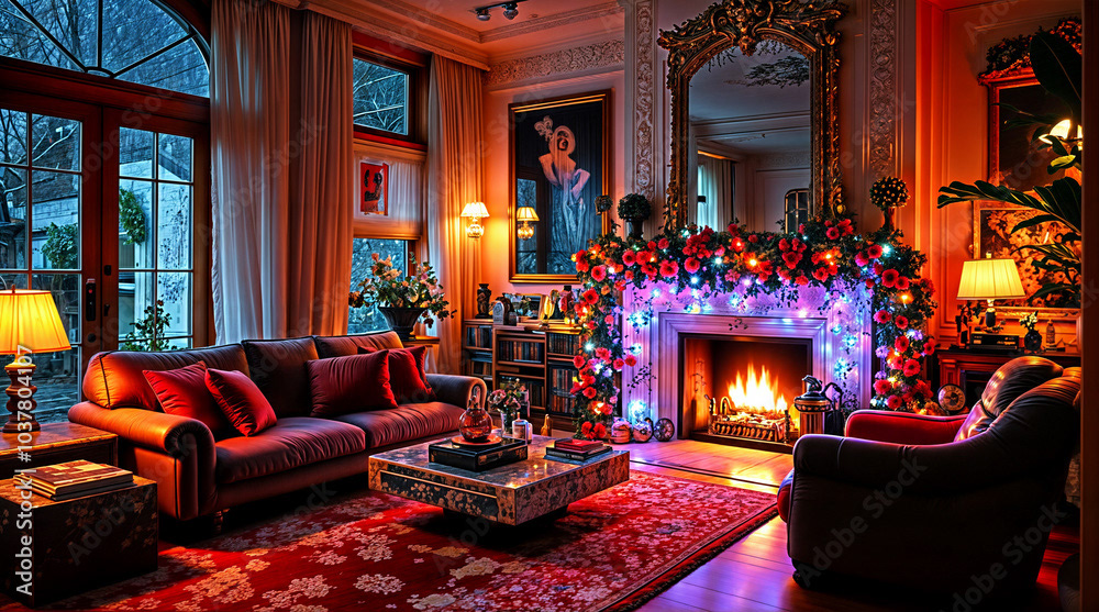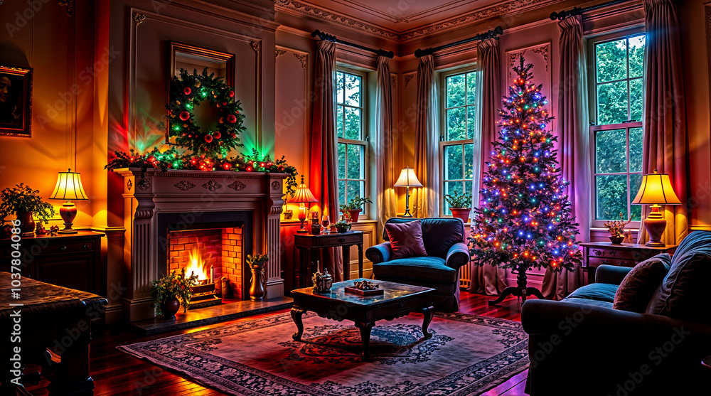 a Victorian brownstone is beautifully illuminated by vibrant Christmas lights.